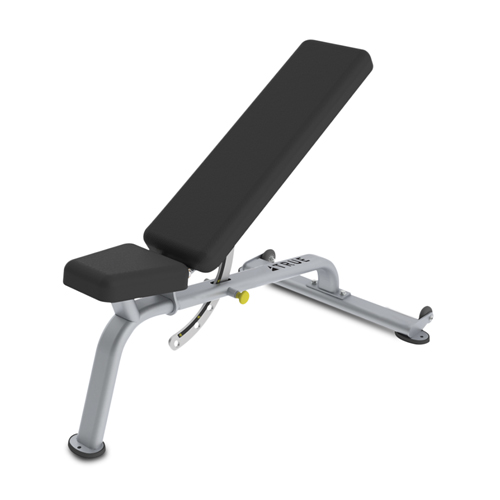 Fitness Line utility bench easily adjusts from -10 to 80 degrees equipped with wheels for easy transportation.