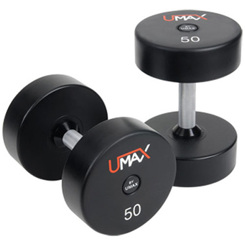UMAX series Polyurethane Dumbbells are assembled in The USA with Patented Dual-Lock and Dura-Edge technology. The weight heads are solid steel encased in high grade cast polyurethane (CPU). The dumbbell handles are made of Heat-Treated Alloy Steel with Hard-Chrome finish. Domestic origin High Strength stainless steel handles are available for upgrade as well as custom logos.